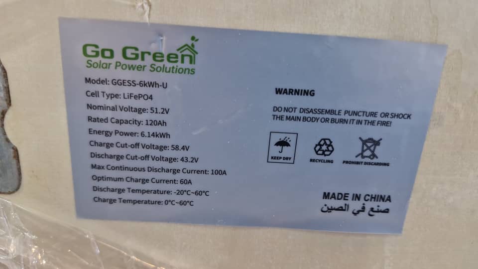 باتری لیتیوم برند Go Green 6KWH مدل GGESS-6KWH 125 آمپر ساعت 6 کیلووات ساعت